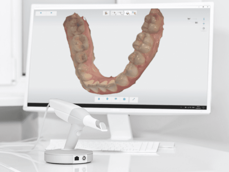 Our handheld scanner captures precise 3-D models of your teeth quickly and comfortably.
